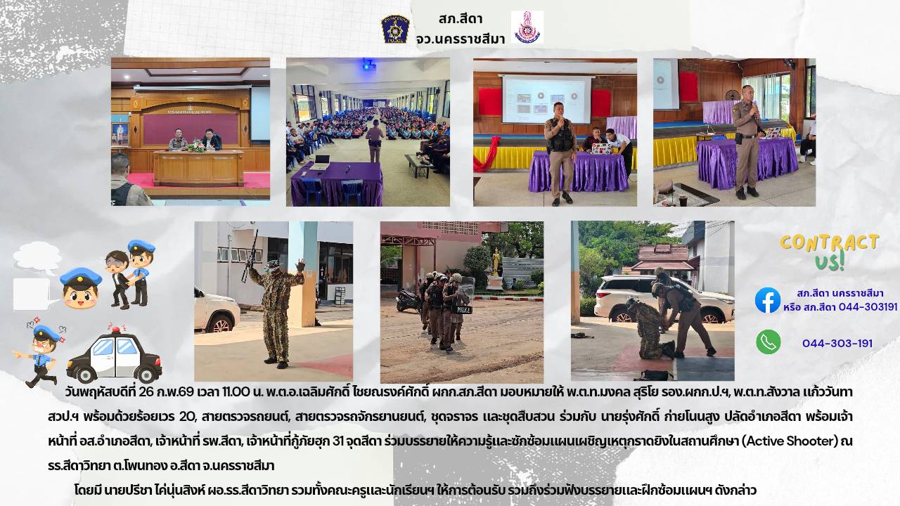 วันอังคารที่ 24 ก.พ.69 เวลา 10.00 น. ร.ต.อ.จิรทิปต์ หงษ์คำ รอง สว.ธร.สภ.สีดา พร้อมเจ้าหน้าที่ตำรวจชุ