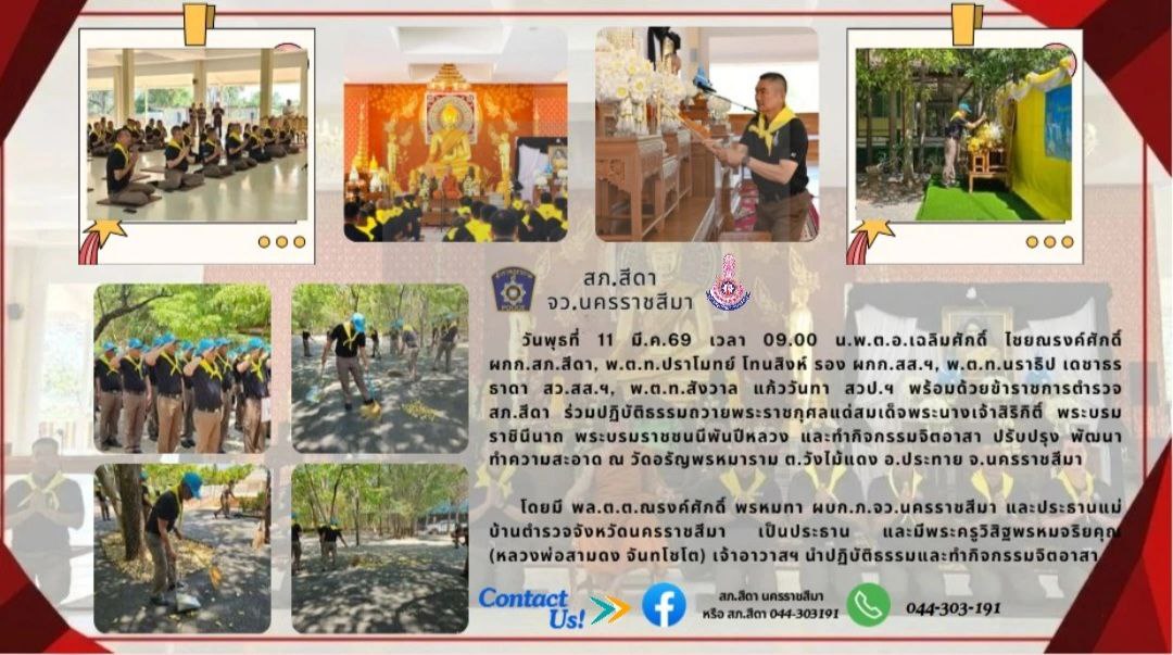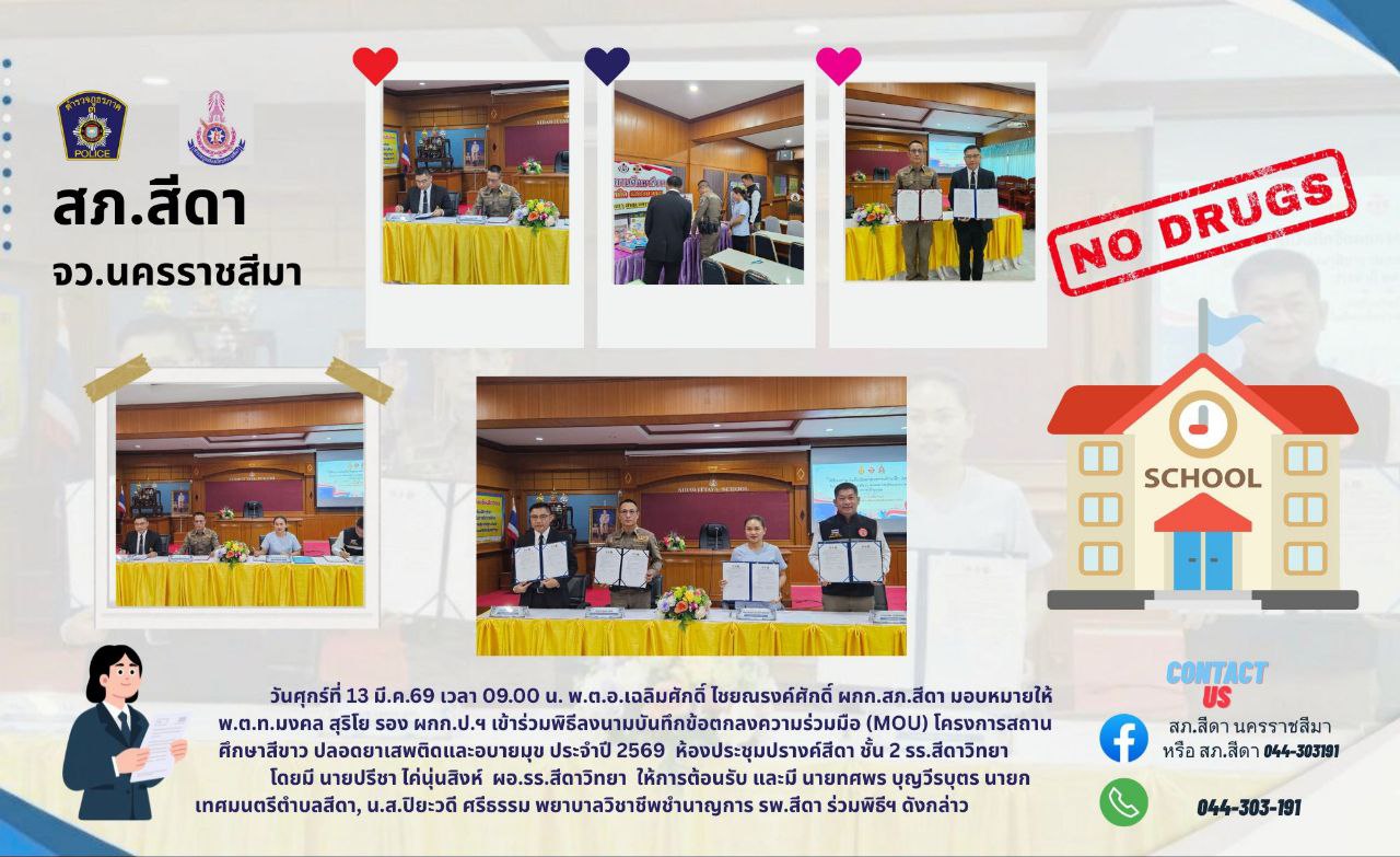 วันพุธที่ 11 มี.ค.69 เวลา 09.00 น.พ.ต.อ.เฉลิมศักดิ์ ไชยณรงค์ศักดิ์ ผกก.สภ.สีดา, พ.ต.ท.ปราโมทย์
