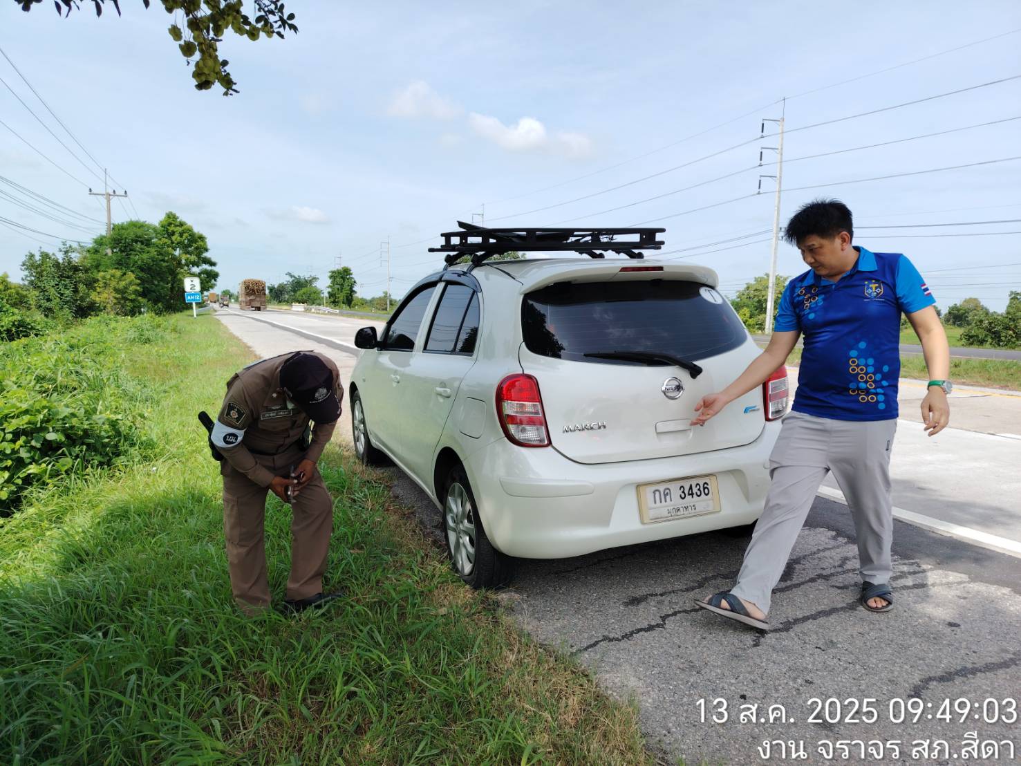 ช่วยเหลือประชาชน 13 สิงหาคม 2568 โดย adminsida / งานจราจร วันพุธที่ 13 ส.ค.68 เวลา 09.49 น. สภ.สีดาได้รับแจ้งทางโทรศัพท์ เหตุรถยนต์เก๋งยางแตกขอความช่วยเหลือ บริเวณ ถ.มิตรภาพ กม.ที่ 224 ต.โนนประดู่ อ.สีดา จ.นครราชสีมา ร.ต.อ.ชัยสิทธิ์ งามเลิศ รอง สว.(ป.) สภ.สีดา ปฏิบัติหน้าที่ร้อยเวร 60 พร้อมลูกข่ายจราจร ได้ให้การช่วยเหลือเปลี่ยนยางเส้นใหม่เพื่อให้ประชาชนผู้ขอความช่วยเหลือสามารถไปต่อได้อย่างปลอดภัย FacebookFacebookXXLINELine