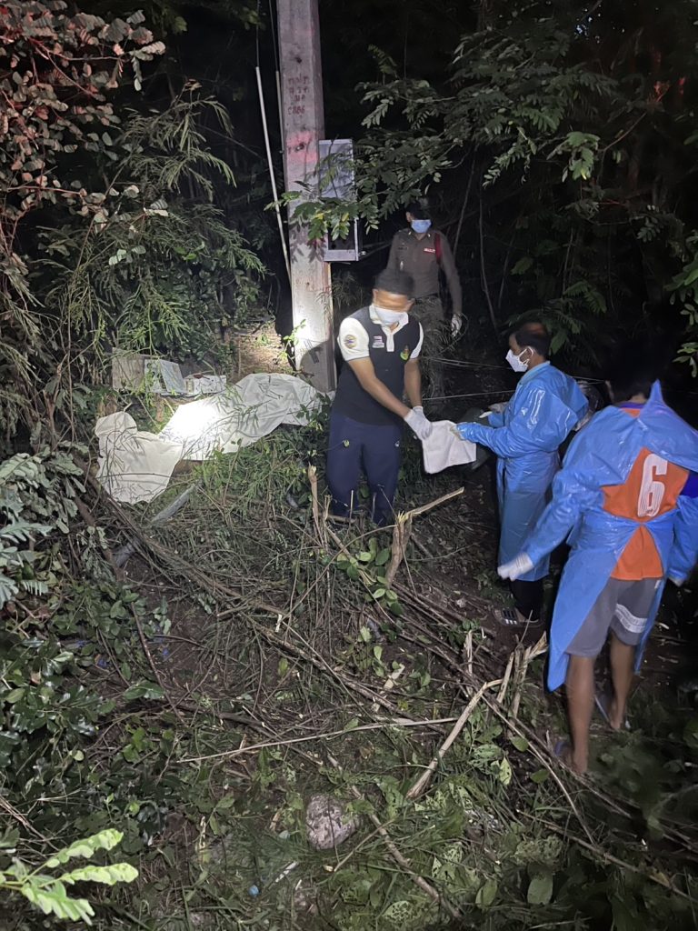 ตรวจสอบที่เกิดเหตุเป็นชายไม่ทราบชื่อ นอนเสียชีวิตในลักษณะคว่ำหน้า มีรอยไหม้ตามลำตัว สันนิษฐานว่าเสียชีวิตมาแล้วประมาณ 3 วัน สอบถามชาวบ้านแล้วไม่ทราบว่าผู้ตายเป็นผู้ใด จึงมอบศพให้มูลนิธินำไปเก็บไว้ เพื่อจะได้ประกาศติดตามหาญาติมารับศพ ไปดำเนินการตามประเพณี